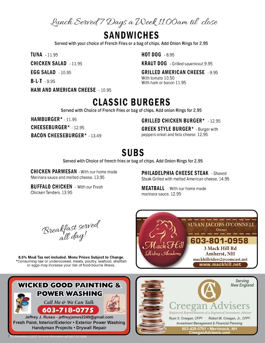 Welcome to The D.W. Diner, a beloved eatery nestled in the heart of Merrimack, NH. This charming diner embodies the essence of Americana, inviting patrons into a cozy atmosphere where friendly service and delicious food reign supreme. With glowing reviews from happy customers, it's evident that The D.W. Diner has undergone a delightful transformation under new management, offering vibrant energy alongside a menu filled with classic diner fare.