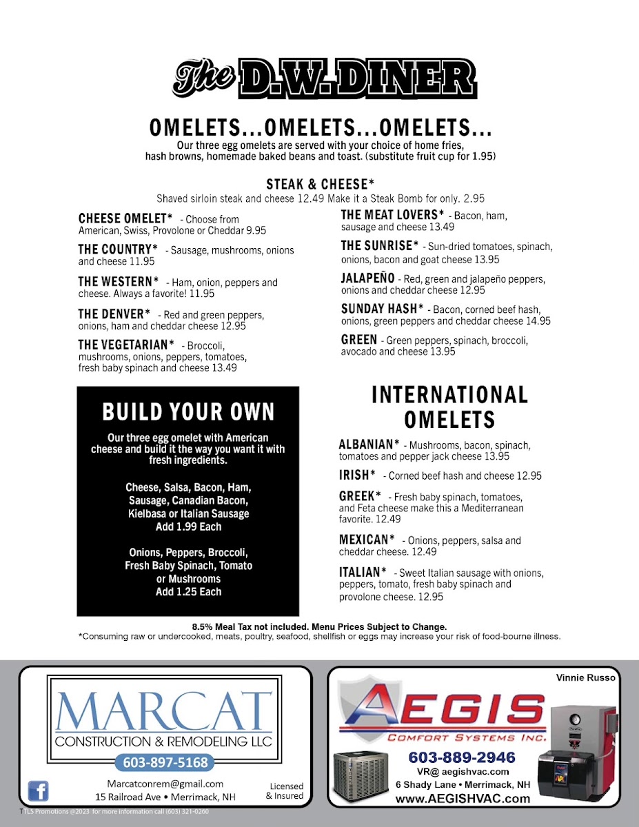 The D.W. Diner Menu